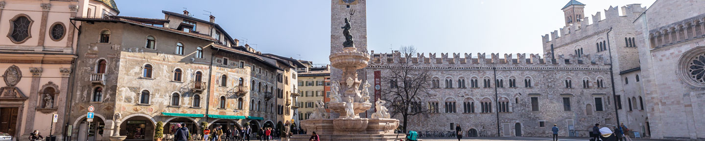 Nel cuore del centro storico di Trento, Piazza del Duomo rappresenta il salotto buono che accoglie cittadini trentini e turisti in un abbraccio fatto di palazzi rinascimentali, delle mura merlate di Palazzo Pretorio e della navata laterale della Cattedrale dedicata al patrono della città, San Vigilio.